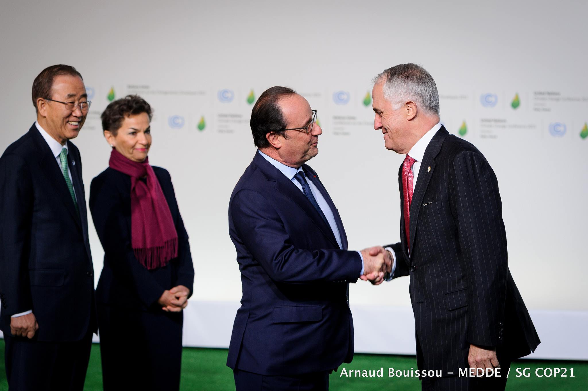 Mr. Malcolm Turnbull was welcomed by Mr. François Hollande, United Nations Secretary-General Ban Ki-moon and the Executive Secretary of the United Nations Framework Convention on Climate Change Christiana Figueres upon his arrival on the site of the COP21 Monday, November 30th.